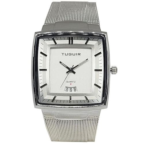 Relógio Unissex Tuguir Analógico TG30335 Prata Relógio Unissex Tuguir Analógico TG30335 Prata Marca: Tuguir Categoria: Analógico Analógico: Sim 1 Horário Ponteiros Fluorescentes: Não Digital: Não Calendário: Sim Despertador: Não Mostra o Dia da Semana: Não Mostra o Dia do Mês: Sim Cronômetro: Não Contador Regressivo: Não Luz: Não Resistente à Água: 3 ATM Resiste a imersões breves - Respingos: Sim - Chuva: Sim - Lavar Carro: Sim - Lavar Louça: Sim - Natação: Não - Mergulho: Não Característica do Vidro: Cristal Mineral Tipo de Fecho: Gancho Cor da Caixa: Prata Material da Caixa: Metal Banho IP Formato da Caixa: Quadrado Comprimento da Caixa: 37,00 mm Largura da Caixa: 37,00 mm Espessura da Caixa: 10,00 mm Cor da Pulseira: Prata Material da Pulseira: Aço Largura da Pulseira: 21,50 mm Comprimento Máximo da Pulseira: 220,00 mm Alimentação: Bateria Interna Peso Líquido: 0,080 Kg Modelo: TG30335 Cor Predominante: Prata Garantia: 12 Meses