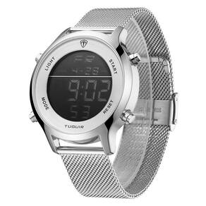 Relógio Unissex Tuguir Digital TG101 - Prata Relógio Unissex Tuguir Digital TG101 - Prata Marca: Tuguir Categoria: Digital Analógico: Não Digital: Sim 1 Horário Calendário: Sim Despertador: Sim Mostra o Dia da Semana: Sim Mostra o Dia do Mês: Sim Cronômetro: Sim Contador Regressivo: Não Luz: Sim Cor da Iluminação: Verde Resistente à Água: 3 ATM Resiste a imersões breves - Respingos: Sim - Chuva: Sim - Lavar Carro: Sim - Lavar Louça: Sim - Natação: Não - Mergulho: Não Característica do Vidro: Cristal Mineral Tipo de Fecho: Gancho Cor da Caixa: Prata Material da Caixa: Metal Banho IP Formato da Caixa: Redondo Diâmetro da Caixa: 43,00 mm Espessura da Caixa: 12,60 mm Cor da Pulseira: Prata Material da Pulseira: Aço Largura da Pulseira: 19,80 mm Comprimento Máximo da Pulseira: 220,00 mm Alimentação: Bateria Interna Peso Líquido: 0,090 Kg Modelo: TG101 Cor Predominante: Prata Garantia: 12 Meses Conteúdo da Embalagem: 01 Relógio 01 Embalagem 01 Termo de Garantia