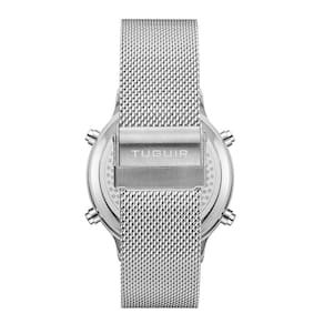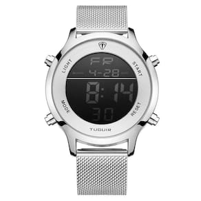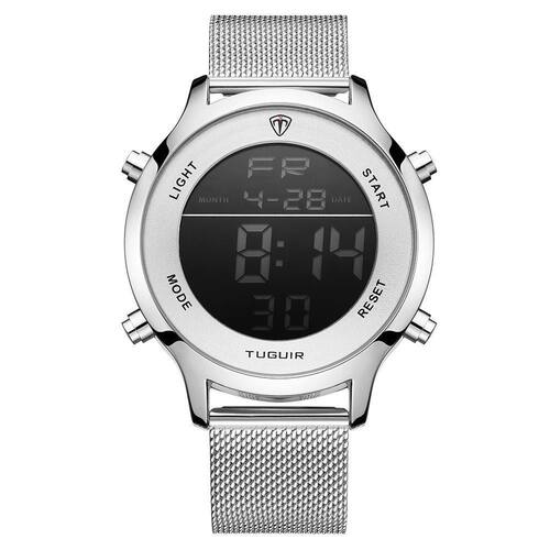 Relógio Unissex Tuguir Digital TG101 - Prata Relógio Unissex Tuguir Digital TG101 - Prata Marca: Tuguir Categoria: Digital Analógico: Não Digital: Sim 1 Horário Calendário: Sim Despertador: Sim Mostra o Dia da Semana: Sim Mostra o Dia do Mês: Sim Cronômetro: Sim Contador Regressivo: Não Luz: Sim Cor da Iluminação: Verde Resistente à Água: 3 ATM Resiste a imersões breves - Respingos: Sim - Chuva: Sim - Lavar Carro: Sim - Lavar Louça: Sim - Natação: Não - Mergulho: Não Característica do Vidro: Cristal Mineral Tipo de Fecho: Gancho Cor da Caixa: Prata Material da Caixa: Metal Banho IP Formato da Caixa: Redondo Diâmetro da Caixa: 43,00 mm Espessura da Caixa: 12,60 mm Cor da Pulseira: Prata Material da Pulseira: Aço Largura da Pulseira: 19,80 mm Comprimento Máximo da Pulseira: 220,00 mm Alimentação: Bateria Interna Peso Líquido: 0,090 Kg Modelo: TG101 Cor Predominante: Prata : 12 Meses Conteúdo da Embalagem: 01 Relógio 01 Embalagem 01 Termo de Marca: Não Informado