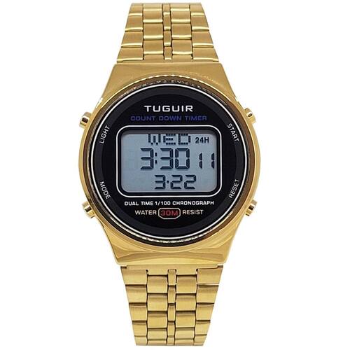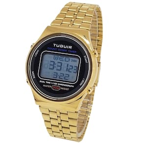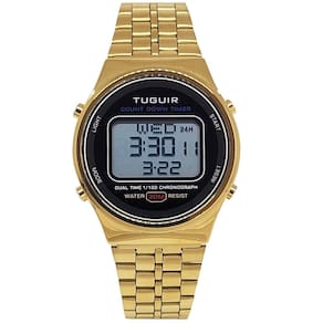 Relógio Unissex Tuguir Digital TG30314 DouradoMarca: Tuguir Categoria: Digital Analógico: Não Digital: Sim (1 Horário) Calendário: Sim Despertador: Sim Mostra o Dia da Semana: Sim Mostra o Dia do Mês: Sim Cronômetro: Sim Contador Regressivo: Sim Luz: Sim Cor da Iluminação: Resistente à Água: 3 ATM (Resiste a imersões breves) - Respingos: Sim - Chuva: Sim - Lavar Carro: Sim - Lavar Louça: Sim - Natação: Não - Mergulho: Não Característica do Vidro: Cristal Mineral Tipo de Fecho: Gancho Cor da Caixa: Dourado Material da Caixa: Metal Banho IP Formato da Caixa: Redondo Diâmetro da Caixa: 35,50 (mm) Espessura da Caixa: 9,00 (mm) Cor da Pulseira: Dourado Material da Pulseira: Aço Largura da Pulseira: 15,00 (mm) Comprimento Máximo da Pulseira: 230,00 (mm) Alimentação: Bateria Interna Peso Líquido: 0,060 Kg Modelo: TG30314 Cor Predominante: Dourado Garantia: 12 MesesConteúdo da Embalagem: 01 Relógio 01 Embalagem 01 Termo de Garantia