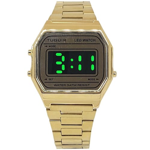 Relógio Unissex Tuguir Digital TG30321 Dourado Relógio Unissex Tuguir Digital TG30321 Dourado Marca: Tuguir Categoria: Digital Analógico: Não Digital: Sim 2 Horário Calendário: Não Despertador: Não Mostra o Dia da Semana: Não Mostra o Dia do Mês: Não Cronômetro: Não Contador Regressivo: Não Luz: Selecione Resistente à Água: 3 ATM Resiste a imersões breves - Respingos: Sim - Chuva: Sim - Lavar Carro: Sim - Lavar Louça: Sim - Natação: Não - Mergulho: Não Característica do Vidro: Cristal Mineral Tipo de Fecho: Gancho Cor da Caixa: Dourado Material da Caixa: Metal Banho IP Formato da Caixa: Quadrado Comprimento da Caixa: 33,50 mm Largura da Caixa: 33,50 mm Espessura da Caixa: 9,50 mm Cor da Pulseira: Dourado Material da Pulseira: Aço Largura da Pulseira: 15,00 mm Comprimento Máximo da Pulseira: 230,00 mm Alimentação: Bateria Interna Peso Líquido: 0,060 Kg Modelo: TG30321 Cor Predominante: Dourado Garantia: 12 Meses