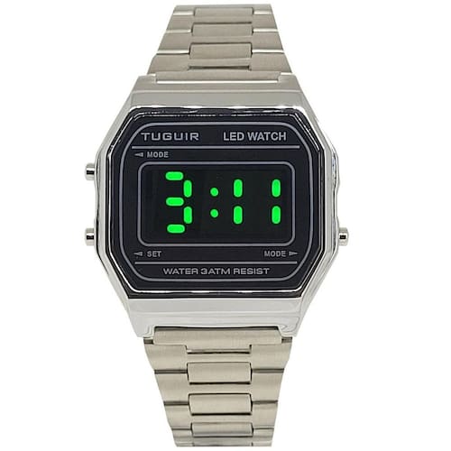 Relógio Unissex Tuguir Digital TG30322 Prata Relógio Unissex Tuguir Digital TG30322 Prata Marca: Tuguir Categoria: Digital Analógico: Não Digital: Sim 2 Horário Calendário: Não Despertador: Não Mostra o Dia da Semana: Não Mostra o Dia do Mês: Não Cronômetro: Não Contador Regressivo: Não Luz: Sim Cor da Iluminação: Resistente à Água: 3 ATM Resiste a imersões breves - Respingos: Sim - Chuva: Sim - Lavar Carro: Sim - Lavar Louça: Sim - Natação: Não - Mergulho: Não Característica do Vidro: Cristal Mineral Tipo de Fecho: Gancho Cor da Caixa: Prata Material da Caixa: Metal Banho IP Formato da Caixa: Quadrado Comprimento da Caixa: 33,50 mm Largura da Caixa: 33,50 mm Espessura da Caixa: 9,50 mm Cor da Pulseira: Prata Material da Pulseira: Aço Largura da Pulseira: 15,00 mm Comprimento Máximo da Pulseira: 230,00 mm Alimentação: Bateria Interna Peso Líquido: 0,060 Kg Modelo: TG30322 Cor Predominante: Prata Garantia: 12 Meses