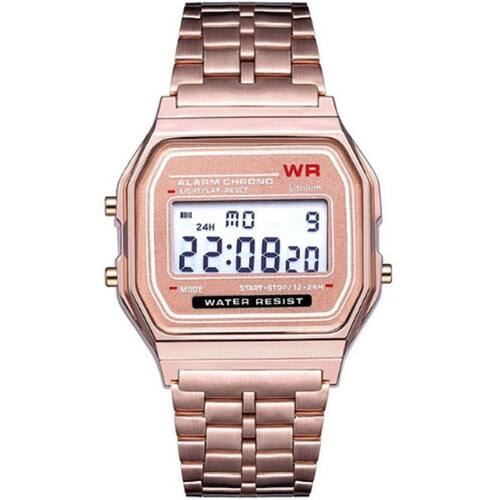 Relógio Wr Digital Aço Vintage Unissex Rose Alarme Top