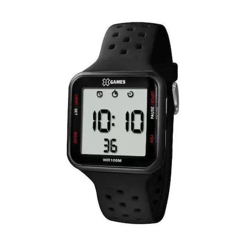 Relógio X-Games Masculino Digital XGPPD090W BXPX Informações Do Relógio Marca X-Games Forma Quadrado Cristal Vidro, Resina, Mineral Tipo de tela ou mostrador Digital Diâmetro da caixa 32 milímetros Espessura da caixa 15 milímetros Material da faixa, pulseira ou tira Resina Cor da faixa, pulseira ou tira Preto Cor do mostrador Preto Peso 1 Quilogramas Movimento do relógio Quartzo Resistência à água 100 Metros Alarme Calendário Cronógrafo Iluminação Noturna Timer Ean: 7891529991695