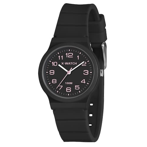 Relógio X-Watch Feminino Ref: Xkpp0005 P2px Infantil Analógico DESCRIÇÃO DO PRODUTO: Funções: Analógico Resistência à Água: 100m Diâmetro da Caixa: 34 mm Características: com caixa em Resina preta e pulseira em Silicone preta Vidro: acrílico Fundo Parafusado Alimentação do maquinário: Bateria Mostrador Preto com todos os números e detalhes em rosa Infantil de 1 Ano Marca: Não Informado Ean: 7891529240021