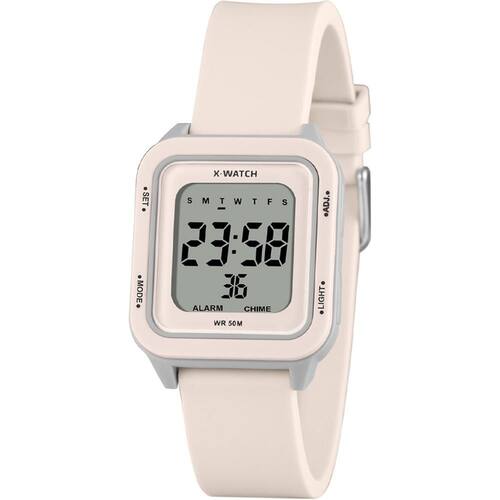 Características: com caixa em Resina Cinza com detalhes Nude e pulseira em Silicone Nude