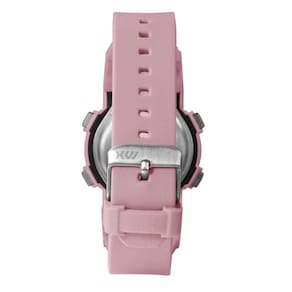 Funções: Digital, Iluminação, Calendário, Cronógrafo, Alarme Resistência à Água: 100m Diâmetro da Caixa: 35 mm Características: com caixa em Resina Rosa e pulseira em Silicone Rosa Vidro: acrílico Fundo Parafusado Alimentação do maquinário: Bateria Mostrador Rosa com detalhes em preto Infantil