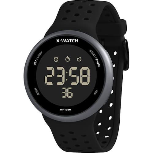Marca: X-Watch Referência: XMPPD485W PXPX Gênero: Unissex Cor da Pulseira: Preto Cor da Caixa: Cinza Material da Pulseira: Silicone Material da Caixa: Policarbonato Tamanho da Caixa: 43 mm (A x L) Resistência à Água: 10 ATM (100 metros) Tipo de Movimento: Digital Características do Vidro: Acrílico Marca: Não Informado