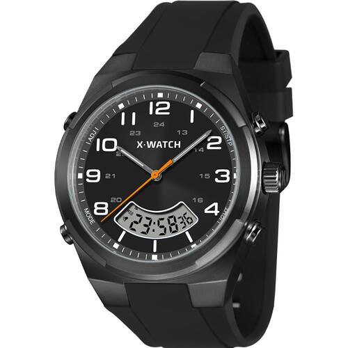 Características: com caixa em Aço e pulseira em Silicone Preta