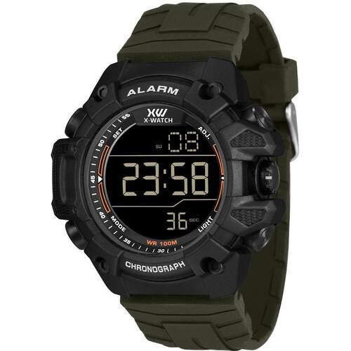Características: com caixa em Resina Preta e pulseira em Silicone Verde