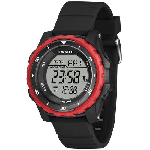 Características: com caixa em Resina Preta e vermelha e pulseira em Silicone Preta