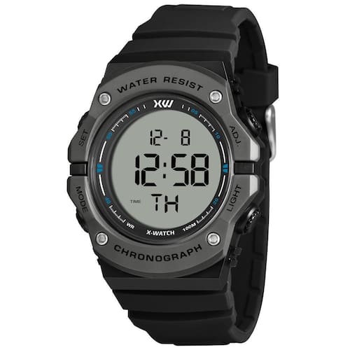 Relógio X-Watch Masculino Ref: Xmppd783 Pxbx Esportivo Digital DESCRIÇÃO DO PRODUTO: Funções: Digital, Iluminação, Calendário, Cronógrafo, Alarme, Timer, Dual Time Resistência à Água: 100m Diâmetro da Caixa: 47 mm Características: com caixa em Resina Marrom e Preta e pulseira em Silicone Preta Vidro: acrílico Fundo Parafusado Alimentação do maquinário: Bateria Mostrador Preto com detalhes em branco e azul de 1 Ano Marca: Não Informado