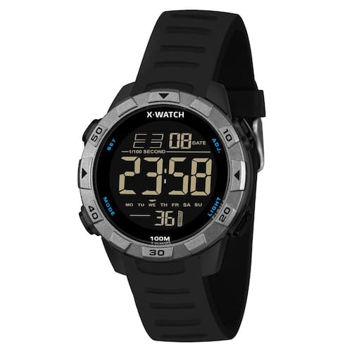 Características: com caixa em Resina Preta com detalhes em grafite e pulseira em Silicone Preta