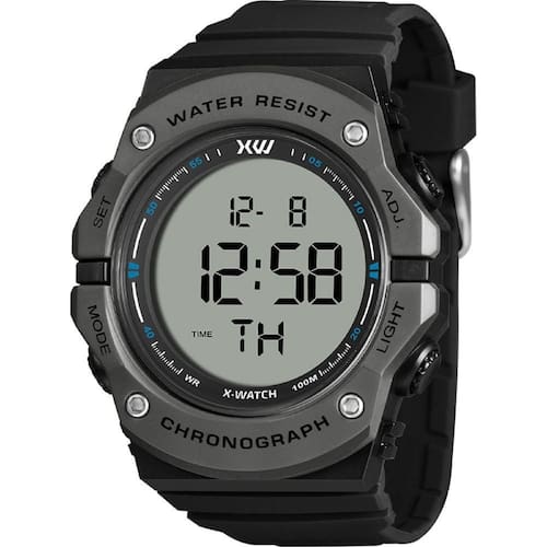 Marca: X-Watch Gênero: Masculino Linha: XTYLE Diâmetro da Caixa: 48mm Prova d'água 100M Caixa: em policarbonato Pulseira: em silicone Vidro: em acrílico Funções: Digital, Cronógrafo, 3 Alarmes, Timer, Dual Time, Calendário, 12/24 h, Iluminação