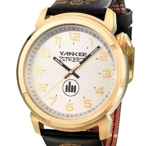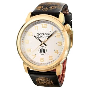 Relógio Yankee StreetFeminino YS30443B. Possui mecanismo Analógico, pulseira na cor dourado com preto, fabricada em couro, e possui fecho fivela, vidro fabricado em cristal mineral e visor preto. A caixa na cor dourado (peça onde fica o mostrador) é fabricada em aço, medindo 4,6 cm de diâmetro e 1,4 cm de espessura, no formato redondo. O Relógio Yankee Street tem nível de resistência à água de 100m/10atm.