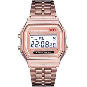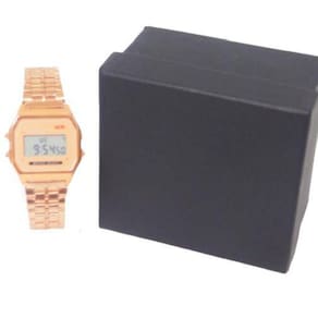 DescriçãoMarca: SYNOKEModelo: 9009Cor: Rosê Características:Relógio eletrônico quadrado retrô, drenagem de baixo custo, ótimo custo-benefício. -cronômetro de 1/100 de segundo -alarme -iluminador em LED -pulseira de aço inoxidável - Design retrô popular -vidro com resina -material do corpo/garra: Resina / Dourado -pulseira de Aço Inoxidável -fecho ajustável Peso: 45 GramasComprimento do relógio: 220mmDiâmetro de discagem: 35.37mmDial espessura: 8.89mmLargura da cinta: 20,35mmPacote: 1 Relógio + 1 Caixa Marca: Seynoke