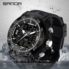 Característica: Cronômetro,luz de fundo,À prova de choque,Tela de LED,Luminous,Data automática,Fuso horário múltiplo,À Prova D'Água,ALARME,nadar,Semana de Exibição
