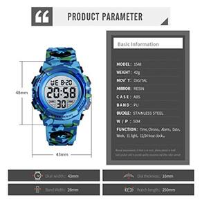 Relógio Dayllon Boys Watch Digital Sports 50M Waterproof Watches para meninos e meninas Relógio de pulso analógico de quartzo com alarme - azul camuflado
