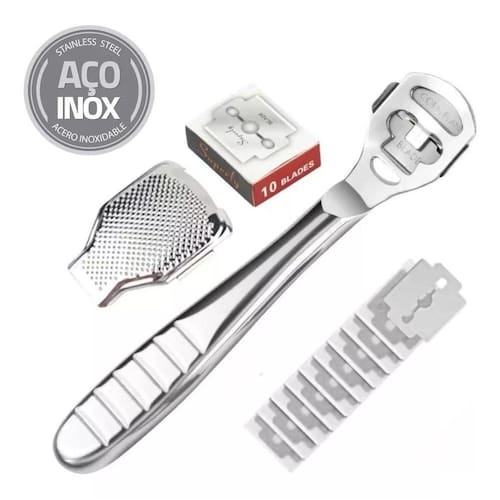 Removedor de calos e pele grossa Desbastador de Calosidades - Aço InoxRemovedor de calos e pele grossa para mãos e pés, produto de alta qualidade desenvolvido em 100% aço inox, acompanha kit com 10 laminas, elimine calosidades, pele grossa, pele morta e rachaduras de forma segura, rápida, eficaz e indolor.Características do produto:-100% Aço inox;-kit com 10 laminas;-esterilizável;-para pés e mãos;-qualidade Premium; Marca: Calox