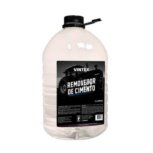 Vintex Removedor De Cimento 5l - VonixxRemovedor de Cimento foi desenvolvido para auxiliar na remoção de incrustações causadas por restos de cimento. O produto pode ser usado em máquinas industriais, tratores, caminhões e betoneiras.OBS: Usar obrigatoriamente luvas de látex nitrílico na aplicação do produto. Recomendamos realizar spot test em uma pequena área na superfície a ser realizada a limpeza.MODO DE USAR:Usar o produto puro ou diluído na proporção de até 1:5, a depender do grau de sujeira;Aplicar na superfície e com ajuda de uma espátula, remover o excesso de incrustação;Enxaguar com jato de água.
