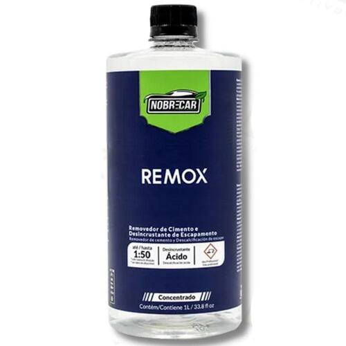 Removedor De Concreto E Ferrugem Escapamento Remox Nobrecar É um limpador ácido concentrado indicado para desincrustação de calçadas e pedras, remoção de pulverizados de cimento de superfícies e detalhamento de escapamentos e chassis automotivo. Atenção: Não utilizar em vidros, frisos de alumínio, Cerâmica ou Porcelanato que Possua Camada de Brilho BEFEFÍCIOS: - Clareia metais e remove ferrugens; - Ideal para chassis e escapamentos; - Desplaca concreto de superfícies; - Desincrusta pedras e calçadas Ean: 7898654094161