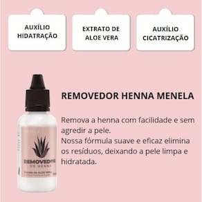 Nosso Removedor de Henna MENELA, remove o excesso de henna na sobrancelha para você obter o melhor design da sobrancelha ou a remoção desejada. O removedor de henna para sobrancelha contém em sua formulação, extrato de aloe vera, que auxilia na hidratação e cicatrização da pele.