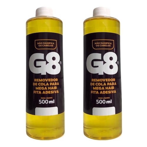 Produto desenvolvido pela marca g8 para retirar 100% do residuo de colas das fitas dupla face usado em mega hair de fita adesiva . Retira o mega hair e proteses com facilidade sem danificar os fios do cabelo do seu cliente , proporcionando assim muito mais rapidez e conforto na hora da manutenção.