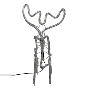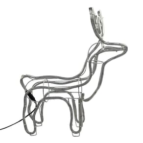 A Armação Rena Macho De Led Média é feita de metal e plástico, com um tamanho de 45cm de altura x 46cm de comprimento x 13cm de largura da rena x 25cm de largura do chifre. Possui 112 lâmpadas de LED que emitem uma luz branca fria, criando um clima mágico e festivo em qualquer ambiente.