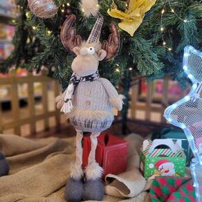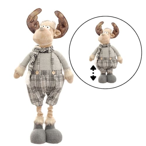 Adicione um toque sofisticado e divertido à sua decoração de Natal com esta rena decorativa em pelúcia de luxo, que conta com um sistema exclusivo de extensão nas pernas. Ela mede 56cm encolhida e pode ser estendida até 76cm, adaptando-se perfeitamente a diferentes espaços e cenários. Vestida em tons de cinza e bege, a rena é complementada por um charmoso gorro e cachecol de crochê cinza e branco, garantindo um visual acolhedor e festivo.