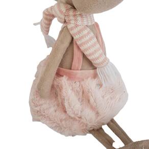 Rena Decorativa estrutura de fibra sintética com vestido de pele rosa e Cachecol de lã.