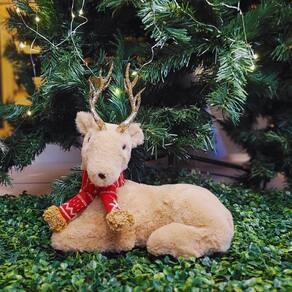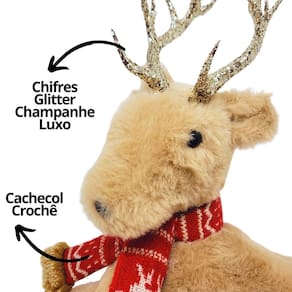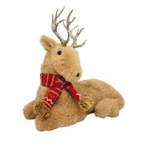 Rena Deitada Decorativa Natal Pelúcia 25cm com Cachecol