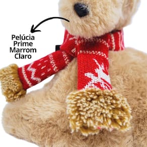 -01 Unidade Rena Natal Deitada Pelúcia Prime Marrom 25cm Cachecol decorado
