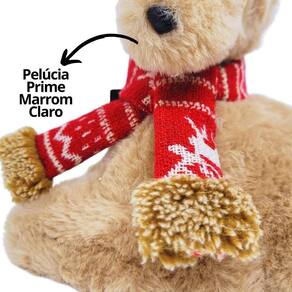 -01 Unidade Rena Natal Deitada Pelúcia Prime Marrom 25cm Cachecol decorado