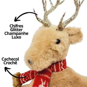 Rena Deitada Decorativa Natal Pelúcia 25cm com Cachecol