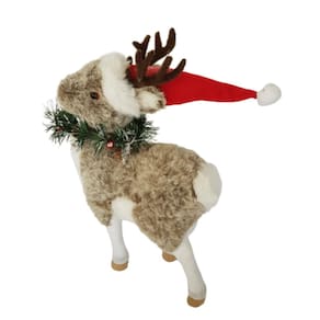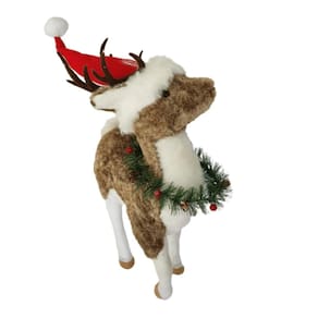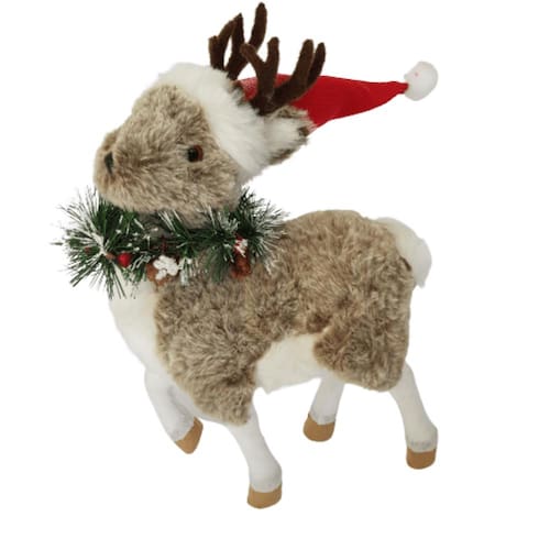 Rena com estrutura de EPS, Revestida com Pele Artificial, Adorno verde no pescoço e Gorro Vermelho.