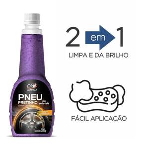 Orbi Pneu Pretinho Gel foi especialmente formulado para cuidar e preservar os pneus e emborrachados em geral. Sua formulação é isenta de glicoses, ou outros açucares, silicones e corantes, tornando-o mais eficiente e de maior rendimento, deixa uma camada protetora na superfície por mais tempo que os outros produtos. Proporciona um brilho espetacular e realça rodas, para-choques, laterais de portas, retrovisores, tapetes e borrachas em geral.