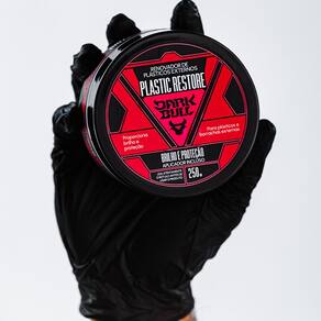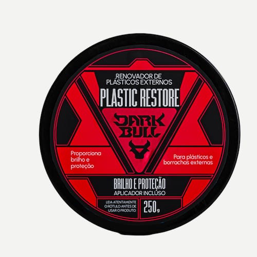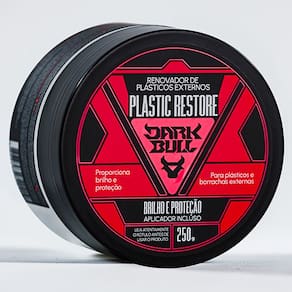 O Renovador de Plásticos Externos Plastic Restore Dark Bull renova e promove brilho em plásticos externos de veículos (retrovisores, para choques e frisos). Apresenta proteção UV e não sai com água. É indicado para ser utilizado em oficinas de repintura automotiva já que não contém silicones. Apresenta um alto rendimento, podendo variar de acordo com o modelo do carro e estado de conservação dos plásticos. Tem durabilidade média de até 30 dias. Não é recomendado para uso em plásticos internos. Marca: DARK BULL