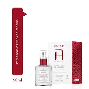 A Ísis Cosméticos é uma empresa que atua no ramo de produtos para beleza, cosméticos e cuidados pessoais. Nós da loja Ísis Cosméticos trabalhamos com as principais marcas do mercado, levando até você os melhores produtos e lhes oferecendo uma ótima experiência. Somos uma empresa que preza pela confiança e satisfação de nossos clientes. ========================================================================================= Como usar: Coloque duas ou três gotas do Reparador de Pontas Amend na palma das mãos e aplique nos cabelos secos ou úmidos. Penteie como de costume. Pode ser como finalizador para selar as pontas. Não enxaguar. Princípios Ativos: Com Proteção Térmica e Filtro UV. ========================================================================================= Anúncio composto por: 01unid. Reparador de Pontas Amend Classics 60ml Sku Interno: AM00033 Agradecemos a preferência. Marca: Não Informado