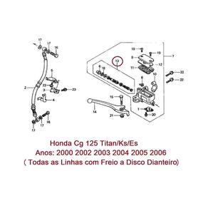 Reparo Cilindro Freio Dianteiro Honda Cg 125 Titan Es Imagens de motocicletas quando houver são meramente ilustrativas Itens inclusos: 1 cilindro interno; 1 mola; 2 gaxetas; 1 anel de trava; 1 guarda pó. Aplicação: Honda cg 125 titan es/ks/esd Anos: 2000 2003 2004 2005 2006 todas as linhas com freio a disco dianteiro Codigo da peça honda: 45530-mn9-305 Descrição: O kit é instalado junto ao conjunto do reservatório de freio localizado no guidão da motocicleta. O conjunto contém cilindro mestre, mecanismo que, auxiliado por um circuito hidráulico, impulsiona o fluido de freio na pressão e na quantidade necessárias ao cilindro da roda, além de conter gaxetas, mola, arruela, anel de trava e guarda pó. Observações: - produzido com melhores equipamentos garantindo segurança e durabilidade; - com as principais montadoras de motocicletas do mercado, - oferecendo o melhor custo benefício, unindo qualidade e eficiência na sua utilidade, - recomendamos que, antes da compra, verifique junto a um do ramo se a peça desejada é a correta pra o seu veículo ou através do catálogo do fabricante; - recomendamos que a instalação seja feita por um especializado. Marca: Não Informado
