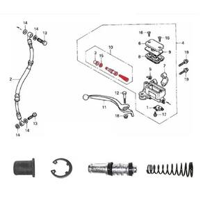 componentes: 1 cilindro mestre; 2 gaxetas; 1 mola; 1 anél de trava; 1 guarda pó. Descrição: kit do reparo do cilindro mestre completo, produzido com alto padrão de qualidade, com a durabilidade semelhante ao ; trabalhamos com a empresas como evolution, agulhas toork, rt entre outras a alguns anos, sendo elas as lideres nacional na fabricação de componentes de reposição para motocicletas. Especificações: ; matéria prima de alta qualidade;