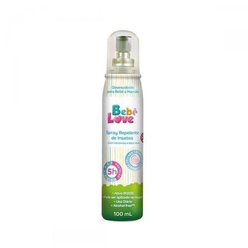 O Spray Repelente de Insetos Suave Bebê Love sem álcool etílico possui formulação neutra e não oleosa enriquecida com Aloe Vera e Camomila. Oferece proteção contra os mosquitos Aedes Aegypti e Culex Quinquefasciatus.