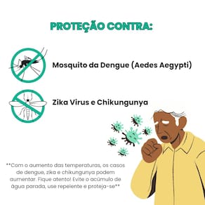 - Proteção prolongada: Fórmula com Icaridina 25% para até 12 horas de proteção contra diversos tipos de insetos, incluindo os transmissores de doenças perigosas.
