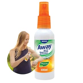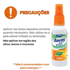 Aplique o Repelente Away Spray diretamente sobre a pele exposta, mantendo uma distância de cerca de 15 cm.
