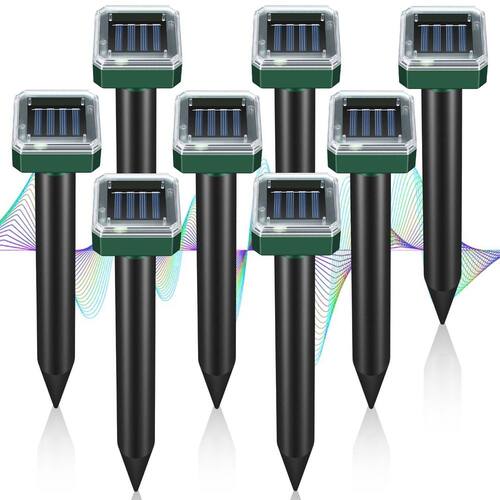 Repelente de toupeiras - ?Repelente de toupeiras para gramados? O dissuasor de toupeiras para quintal emite pulsos ultrassônicos de baixa frequência a cada 20 segundos, durando de 3 a 4 segundos de cada vez. Esses pulsos penetram no solo para repelir as toupeiras humanamente, protegendo efetivamente seu gramado, canteiros de vegetais, flores e mudas de danos causados por escavações. - ? Alimentação solar ultrassônica repelente de gopher? Mantenha seu quintal livre de toupeiras, ratazanas, marmotas e esquilos com o ultrassônico repelente de toupeiras solares. Basta colocar o repelente de toupeiras sob luz solar direta para carregar por pelo menos dois dias antes do primeiro uso, garantindo desempenho ideal e proteção duradoura sem a necessidade de baterias. - ?Ampla área de cobertura? Cada estaca solar repelente de toupeiras cobre até 2.000 pés quadrados, criando uma zona de proteção ao redor do seu quintal. Para melhores resultados, espaçe o matador de toupeiras para gramados a cerca de 21 metros de distância para garantir uma cobertura completa e máxima eficácia em manter toupeiras e esquilos afastados. - ?À prova de intempéries? Feito de plástico ABS de alta qualidade, este repelente de toupeiras e ratazanas é construído para suportar várias condições climáticas, incluindo chuva, garantindo um desempenho confiável durante todo o ano. Limpe regularmente o painel solar para manter o carregamento eficiente. - ?Como se livrar de toupeiras e ratazanas? Basta inserir o repelente ultrassônico movido a energia solar no solo onde a atividade da toupeira está presente, mantendo-o cerca de 5 cm acima da superfície. Pressione o botão ON/OFF para ativar. Uma vez totalmente carregado, o repelente de marmota pode operar continuamente por até 4 dias. Ideal para uso em jardins, pomares, quintais e fazendas.