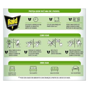 Mosquitos podem interromper o sono de sua família e deixá-los sem o descanso adequado para o dia seguinte. Também podem atrapalhar momentos importantes, que exigem sua concentração, como a hora do estudo, o home office ou mesmo em momentos de lazer. Proteja você e sua família contra os mosquitos com Raid Elétrico Líquido à base de plantas. A proteção contínua que você pode confiar. Coloque-o na tomada e pronto!