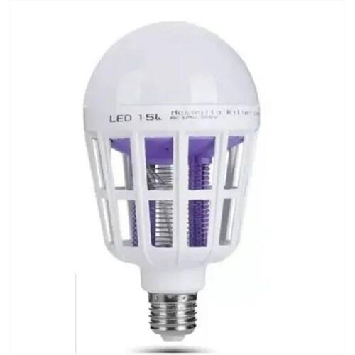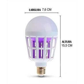Lâmpada de LED 2 em 1: Ilumina com LED branco 15W e possui leds UV para atrair e eliminar pequenos insetos voadores (ex: pernilongos), quando entram na câmara da lâmpada , são eliminados com pequeno choque elétrico.