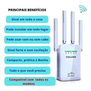 Repetidor 4 Antenas: Conexão Ininterrupta e Amplificador de Sinal Chega com a falta de sinal de internet em casa. Adquira agora o seu repetidor de sinal wifi e não tenha mais dor de cabeça. Em casa ou na empresa, o seu problema estará resolvido. De fácil instalação e sem manutenção. Depois que você instalar, nunca mais terá o problema de falta de internet naquele ambiente onde o sinal não chegava.