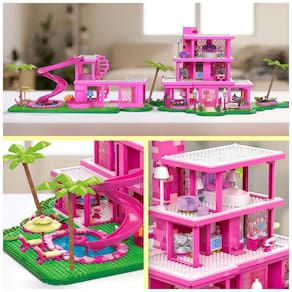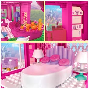 Passe um dia com Barbie e Ken em uma réplica da icônica DreamHouse, como vista no filme Barbie. Este conjunto de construção para colecionadores inclui 1.795 peças e peças que permitem a construção de uma casa de três andares completa com cozinha, bar, quarto, spa e muito mais. Além disso, o conjunto traz acessórios de moda, comida e piscina. As 4 microbonecas montáveis incluem 1 Barbie, 1 Ken e 2 manequins de moda. As peças combinam com todos os brinquedos de construção MEGA e Barbie e são compatíveis com outras marcas.