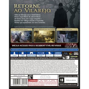Funcionalidades do Jogo: Uma nova perspectiva: Além da intensa visão em primeira pessoa que os jogadores desfrutaram no lançamento inicial de Resident Evil Village, agora eles podem assistir Ethan em ação e experimente sua jornada de um novo ângulo em Resident Evil Village Gold Edition e Winters' Expansion. A História Continua: O novo conto da expansão segue Rose Winters, filha do protagonista principal Ethan, enquanto ela luta com seus poderes aterrorizantes. Explore o mundo deformado e retorcido dentro da consciência do Megamycete em busca de uma cura. Os Mercenários estão de volta e maiores do que nunca: O amado modo de batalha contra o relógio, The Mercenaries retorna com novos recursos . Rostos Familiares e Inimigos Frescos O herói da série Resident Evil, Chris Redfield, retorna sob uma mortalha de motivos aparentemente sinistros. Ethan também encontrará uma série de novos adversários que habitam a enigmática vila, todos com seus próprios ataques distintos. Evolução do Combate Além de engajar inimigos, em Resident Evil Village Ethan pode se proteger contra ataques vindos, ou expulsar os inimigos para ganhar tempo, permitindo que os jogadores criem a melhor abordagem para sobreviver aos desafios futuros. Recursos populares retornam Recursos reconhecíveis retornam Resident Evil Village que acenam para títulos anteriores de Resident Evil, como ?The Duke,? um comerciante que permite aos jogadores comprar e vender itens, comprar receitas para criar e personalizar armas.