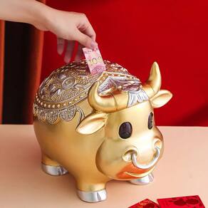 Tamanho: 165 x 21,5 x 18 cm Material: resina Design criativo e exclusivo — Este cofrinho apresenta um charmoso design de touro dourado, simbolizando força, prosperidade e boa sorte. Com detalhes intrincados e acabamento brilhante, serve como uma adição elegante e significativa a qualquer casa ou escritório. Grande capacidade — O cofrinho possui um tamanho generoso, perfeito para armazenar moedas e notas pequenas. Sua grande capacidade permite economizar a longo prazo, tornando-o ideal para crianças e adultos que desejam economizar para objetivos específicos ou simplesmente aproveitar o ato de economizar. Material de resina premium — Feito de resina durável, este cofrinho foi projetado para durar anos. A construção robusta garante que ele possa suportar o uso regular sem quebrar ou perder seu charme facilmente. Ideia perfeita — Seja para aniversários, festivais ou qualquer ocasião especial, este cofrinho dourado é atencioso e prático para meninos, meninas ou qualquer pessoa que adore uma decoração única e esteja interessada em economizar dinheiro de uma forma divertida. Decorativo e funcional — Não é apenas uma ferramenta de economia, este cofrinho funciona como uma peça decorativa para qualquer ambiente. Seu acabamento dourado vibrante e seu design divertido o tornam perfeito para iniciar uma conversa e uma adição elegante a qualquer mesa ou prateleira.